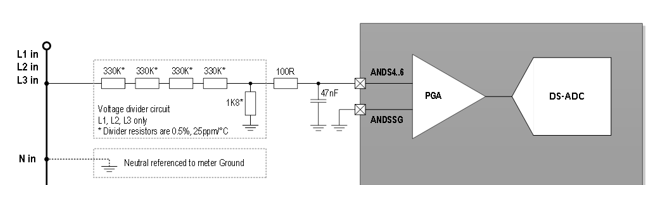 In single-phase AC metering, this is typically live to neutral and is known as phase voltage.