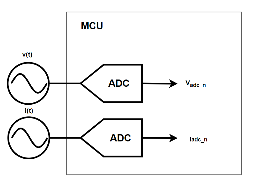 Specifically in the form of ADC samples: \( V_\mathrm{adc_n} \) & \( I_\mathrm{adc_n} \)