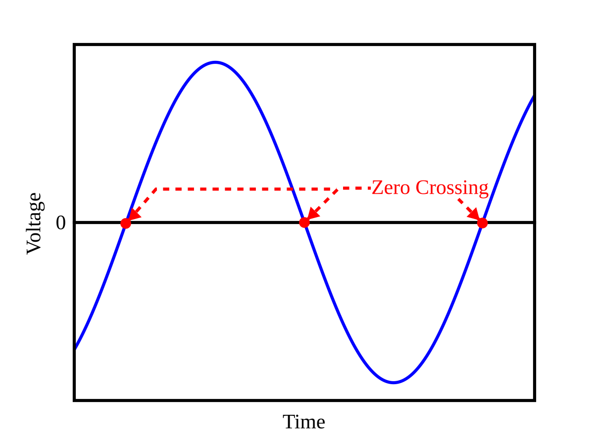 Zero-crossing detection identifies points where the voltage waveform passes through zero in a defined direction (negative-to-positive or positive-to-negative), which serve as time markers of the AC cycle.